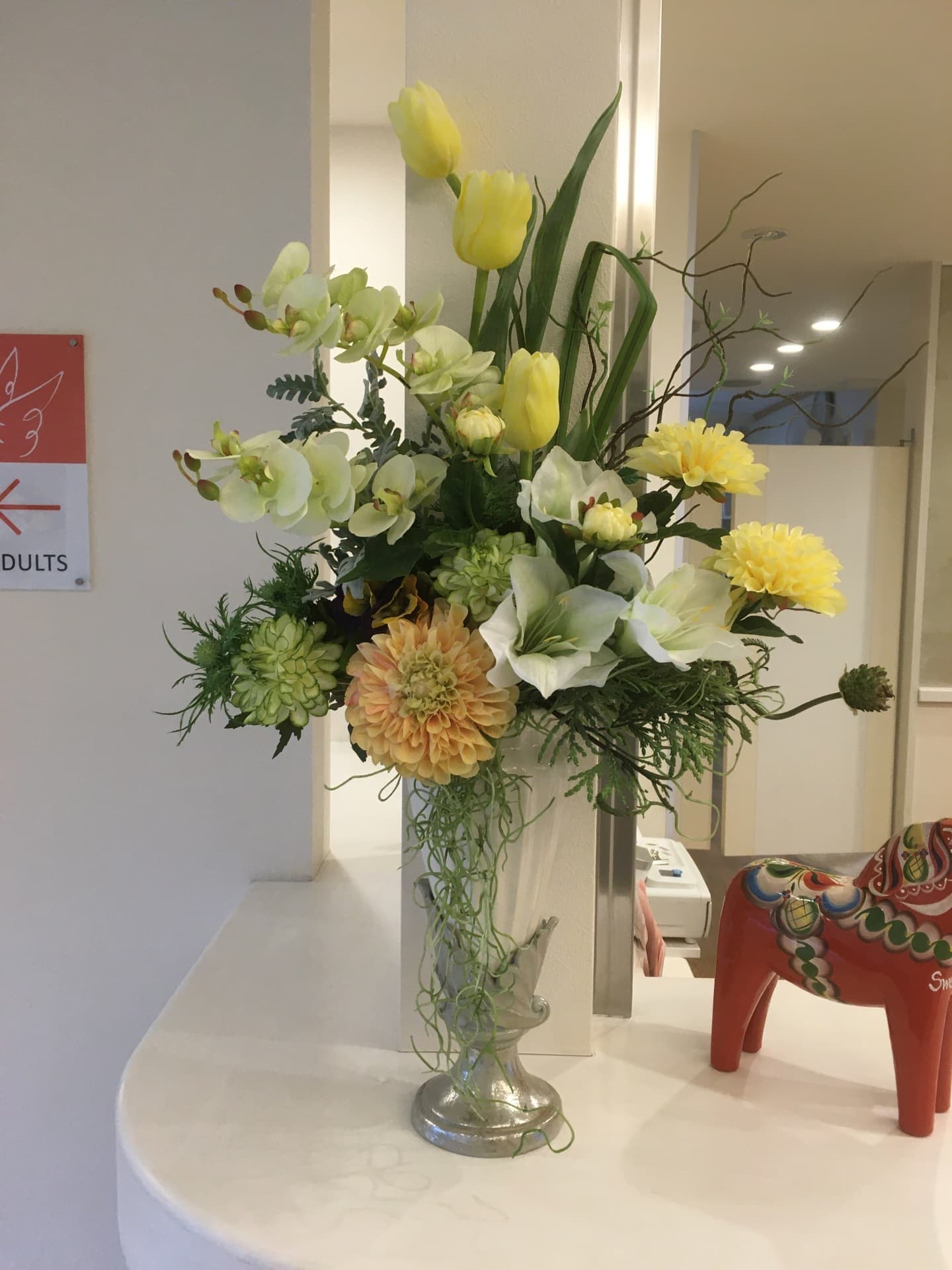 フェイクフラワーは枯れることなく虫も寄り付きません、こちらも病院や飲食店ほかオフィスの受付、商業施設で好まれています。レンタルはこちらまで